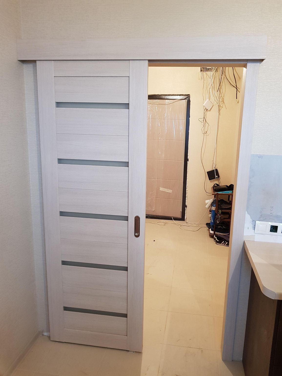 Раздвижная дверь вдоль стены