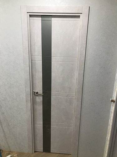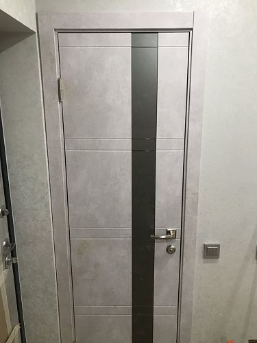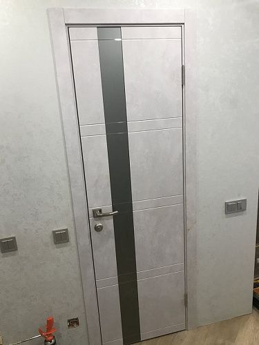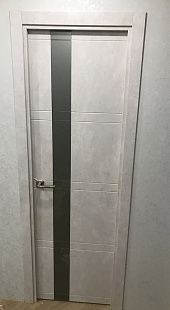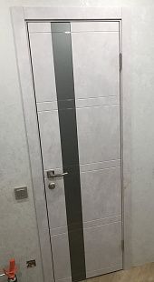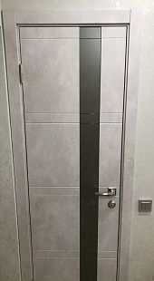 Дверь ПО Evolution 1 Бетон лайт стекло зеркало-графит из Экошпона COVERFLEX (Двери Нева) в Петергофе с установкой и доставкой